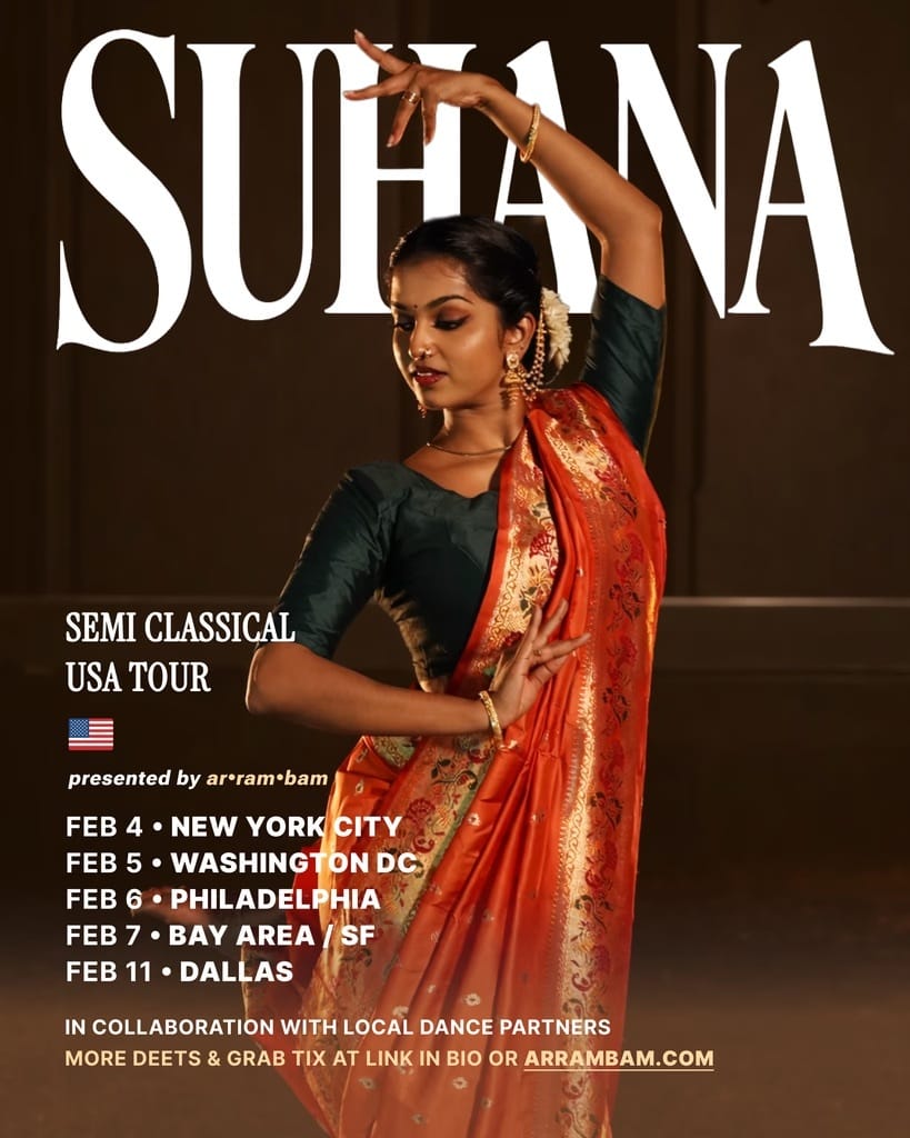 kicking off 2026 with our first-ever Semi Classical USA Dance tour with Suhana in February • bringing iconic Tamil songs to life through Semi-Classical dance styles 🎶