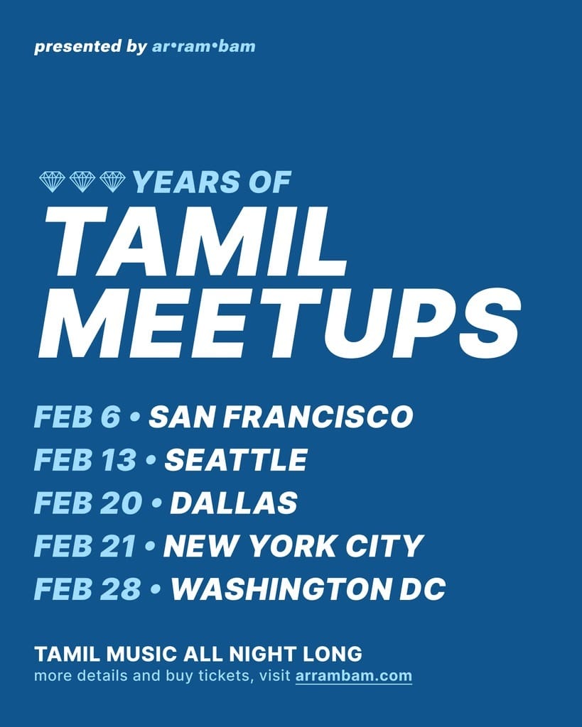 celebrating 3 years of Tamil Meetups with a full month of parties in February across 5 cities • the first one was in NYC back in January 2023 and we're going big for the anniversary 🥳